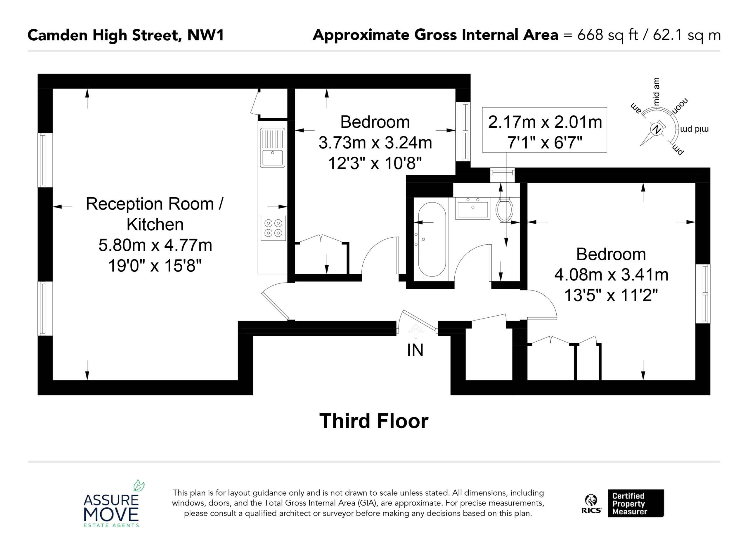 Assure Move are happy to present this bright and modern two-bedroom apartment set on the third floor of a well-maintained building on Camden High Street. The property features a spacious open-plan reception with fitted kitchen, two double bedrooms with built-in storage and a stylish bathroom. Finished to a high standard throughout and offered furnished or part-furnished, it is perfectly located moments from Camden Town Underground, Regent’s Park and the vibrant shops, cafés and restaurants of Camden.