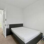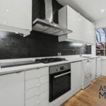 The reception/kitchen features wooden flooring, sleek white units, integrated appliances, and a breakfast bar, creating an ideal space for living and entertaining. Both bedrooms are well-proportioned with neutral décor, while the bathroom is finished to a high standard with quality tiling, a full-sized bath, and separate shower.
