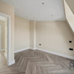 There are two well-proportioned double bedrooms, both offering good natural light and flexible layout options. The modern bathroom is finished to a high specification, complete with a walk-in shower, contemporary fittings, and elegant tiling.